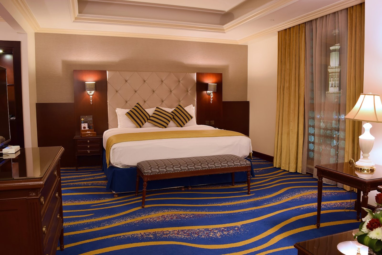 The plush rooms feature opulent decor, Wi-Fi and satellite TV, plus minibars and coffeemakers. Most offer views of the mosque. Suites add separate bedrooms, living areas and kitchenettes; some have kitchens, and rooms for maids and drivers. There’s 24-hour room service.